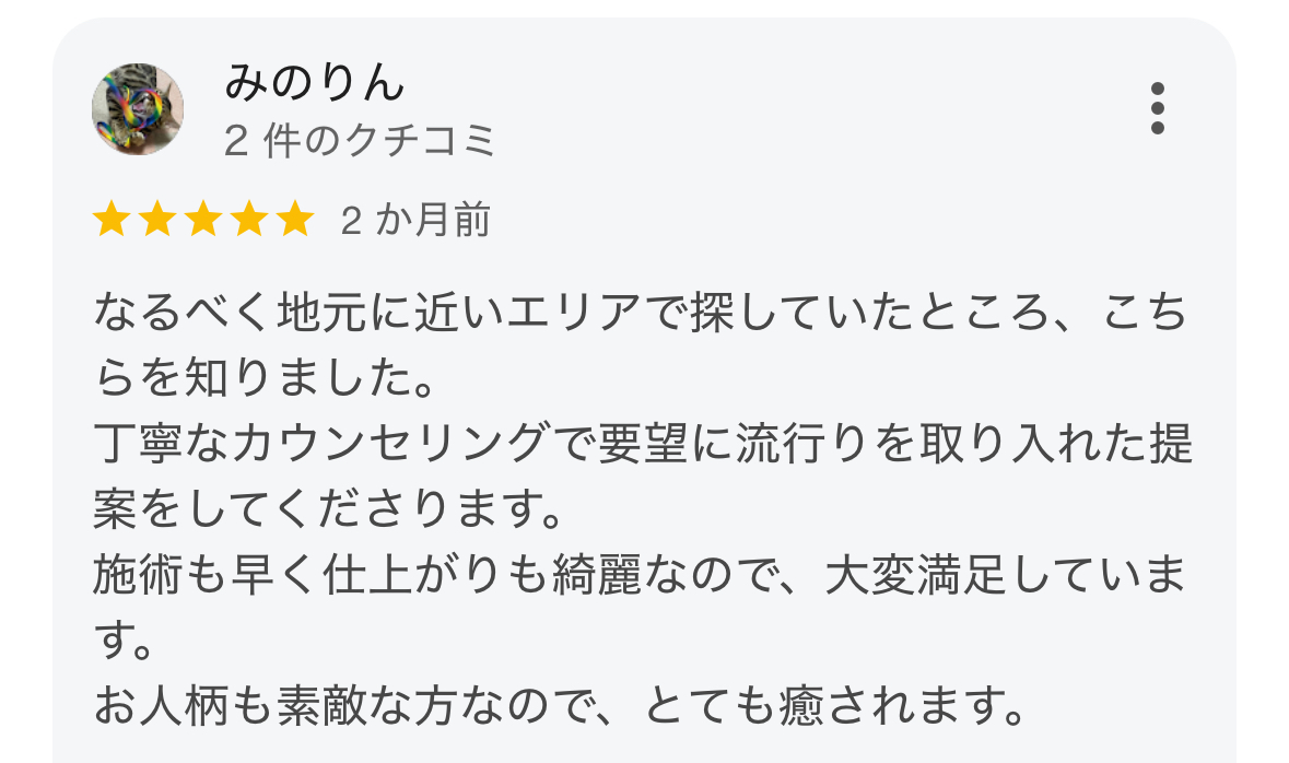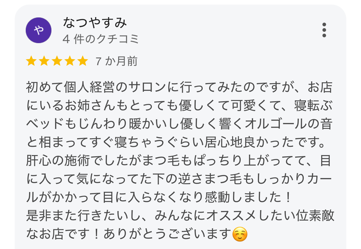 お客様から頂く口コミがとても嬉しく、励みとなっています。